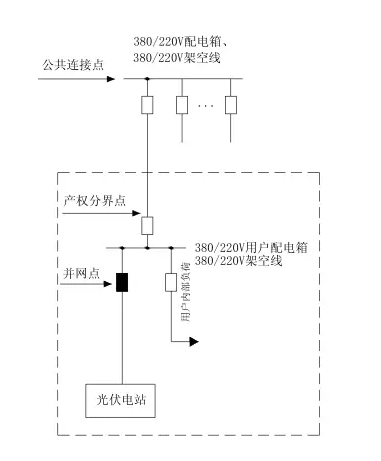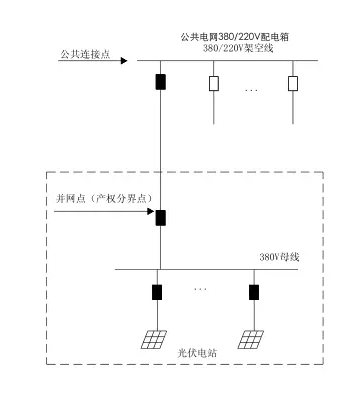?農戶接入方案按電網公司《分布式電源接入系統典型設計》中的低壓側線路接入的“自發自用、余電上網”(XGF-380-Z-1)方案執行。