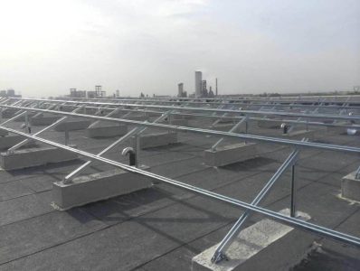 復合底座基礎也稱條形基礎,將前后支架連接為一體,具有更好的抵抗載荷能力。其與支架的連接方式可分為:支架與混凝土基礎基座螺絲連接和支架連同水泥基礎一起澆筑。