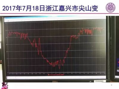 這是7月18日嘉興電力公司尖山變電站的負(fù)荷曲線圖,這是個(gè)220kV的變電站。凌晨和深夜的負(fù)荷有9萬(wàn)、10萬(wàn)。但天一亮負(fù)荷就開(kāi)始降低,中午的負(fù)荷接近于零,還有部分時(shí)段為負(fù)數(shù)。這是因?yàn)閳@區(qū)一百多兆網(wǎng)的光伏!