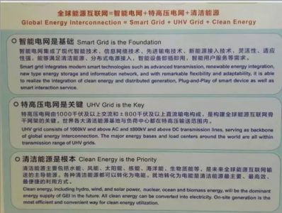 這是國(guó)家電網(wǎng)總部大樓一層大廳的全球能源互聯(lián)網(wǎng)展覽中的一張圖片。清晰地顯示,全球能源互聯(lián)網(wǎng)=智能電網(wǎng)+特高壓電網(wǎng)+清潔能源。智能電網(wǎng)要能夠滿足清潔能源、分布式電源接入的需求。換言之,不能解決好分布式光伏接入問(wèn)題的電網(wǎng)就不是智能電網(wǎng)。