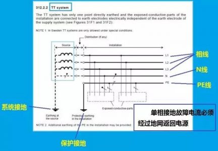 1.對(duì)于TN系統(tǒng)和TT系統(tǒng)來(lái)說(shuō),由于首字母都是T,說(shuō)明這兩個(gè)系統(tǒng)都有系統(tǒng)接地;