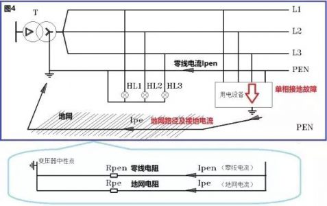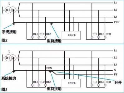 注意,圖2對(duì)應(yīng)的接地系統(tǒng)叫做TN-C,而圖3對(duì)應(yīng)的接地系統(tǒng)叫做TN-C-S。