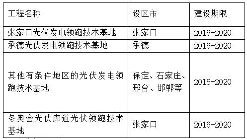 以具備一定規(guī)模、場址相對集中、電力消納條件好且可統(tǒng)一實施建設(shè)為前提,開展光伏發(fā)電領(lǐng)跑技術(shù)基地規(guī)劃建設(shè)。重點在光照資源相對較好,未利用地資源豐富的張承地區(qū),打造百萬級光伏發(fā)電領(lǐng)跑技術(shù)基地。在具備條件的太行山沿線及其他地區(qū),推動發(fā)展規(guī)劃容量不小于50萬千瓦的光伏發(fā)電領(lǐng)跑技術(shù)基地;加快推進冬奧會光伏廊道光伏領(lǐng)跑技術(shù)基地建設(shè)。