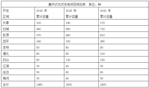 吉林省“十三五”光伏發(fā)展大力推進多能互補集成優(yōu)化項目、“互聯(lián)網(wǎng)+”智慧能源項目以及光伏扶貧項目,到2020年,光伏發(fā)電裝機容量2.4GW。