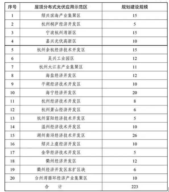 浙江省屋頂分布式光伏應(yīng)用示范區(qū)規(guī)劃布局表 單位:萬千瓦