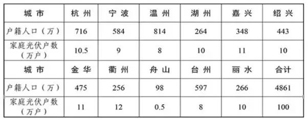 浙江省百萬家庭屋頂光伏工程規(guī)劃布局表
