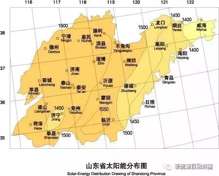 ? ? ? ?山東省太陽能資源從地域分布來看,從東向西逐漸增加。各市的太陽能資源概況見下表。