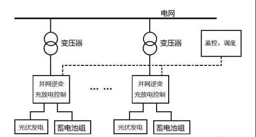 它采用單獨(dú)的充放電控制器和逆變器來給蓄電池充電或者逆變,這種方案實(shí)際上就是給現(xiàn)有光伏發(fā)電系統(tǒng)外掛一個(gè)儲能裝置,可在目前任何一種光伏電站甚至風(fēng)力發(fā)電站或其他發(fā)電站進(jìn)行升級安裝,形成站內(nèi)儲能系統(tǒng),也可以根據(jù)電網(wǎng)需要建設(shè)成為完全獨(dú)立運(yùn)行的儲能電站。