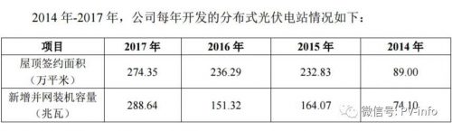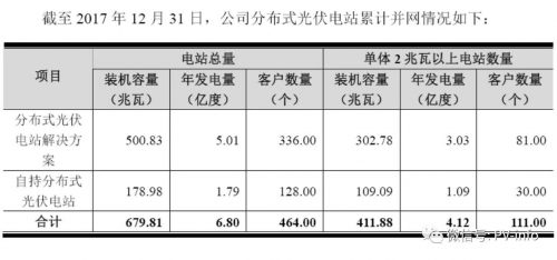 截至 2017 年 12 月 31 日,公司累計開發分布式光伏電站 464 個,全部為屋頂分布式光伏電站,裝機容量 680 兆瓦。