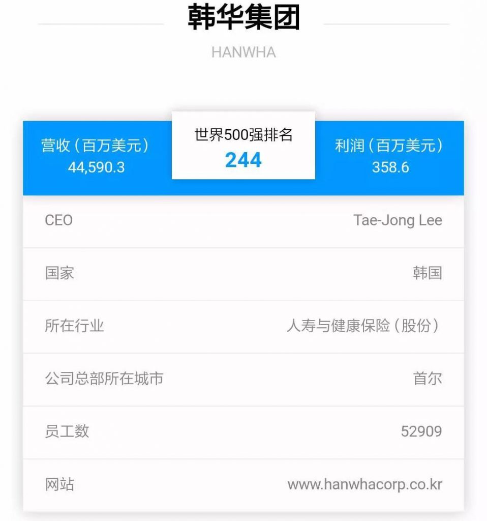 2018年7月20日,一年一度衡量全球大型公司的最著名、最權威的榜單《財富》世界500強排行榜最新發布。依據該榜單的數據,人們可以了解全球最大企業的最新發展趨勢。通過縱向不同年份和橫向不同行業的比較,人們既可以了解企業的興衰,也可以了解公司銷售收益率、凈資產收益率、全員生產效率等經營質量的變化。今年,韓華集團再度登上《財富》世界500強排行榜,榮居第244位。回顧2017年第246位,2016年第277位,2015年329位等,歷年排名穩步提升。成立自1952年,韓華集團目前已擁有66年悠久歷史,通過豐富的管理經驗,發展了56家國內附屬公司和258家境外子公司,業務范圍包括制造與建設、金融、服務與休閑等,各個子公司都是其行業領域內的佼佼者。作為世界五百強韓華集團的旗艦子公司,行業領先的太陽能電池組件制造商以及完整的太陽能解決方案提供者,韓華新能源受益于集團雄厚的資金實力,并且通過久經考驗的德國品質與先進技術、高瞻遠矚的全球化市場布局,締造了全球第一的電池產能以及全球領先的太陽能組件銷售佳績。