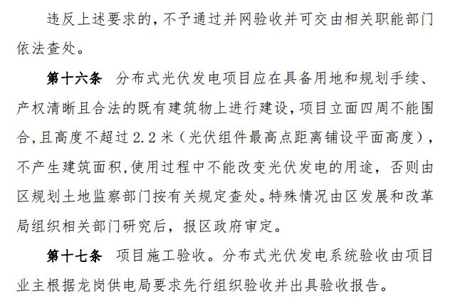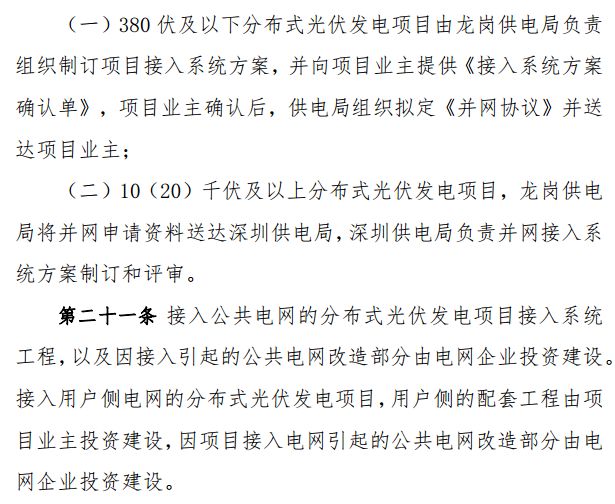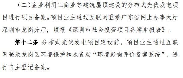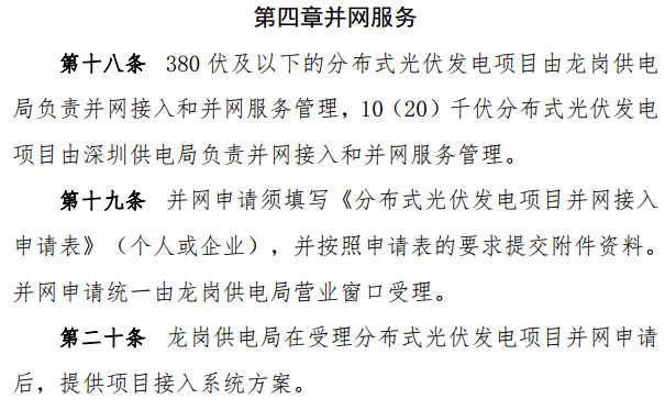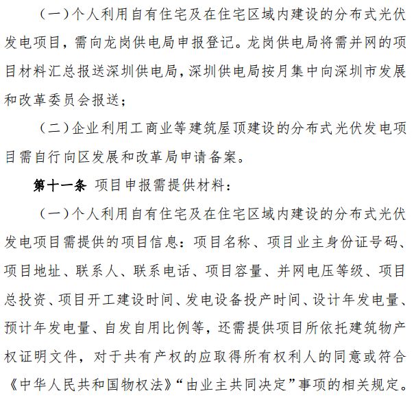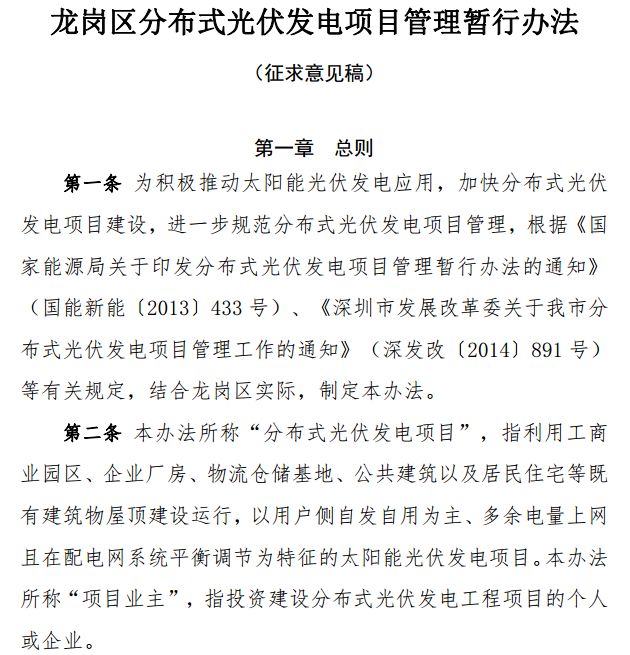 近期,深圳龍崗發改委發布了關于向社會各界公開征集《龍崗區分布式光伏發電項目管理暫行辦法(征求意見稿)》意見的通告,根據意見稿,個人利用自有住宅及在住宅區域內建設的分布式光伏發電項目,需向龍崗供電局申報登記。龍崗供電局將需并網的項目材料匯總報送深圳供電局,深圳供電局按月集中向深圳市發展和改革委員會報送;企業利用工商業等建筑屋頂建設的分布式光伏發電項目需自行向區發展和改革局申請備案。以下為具體詳情。