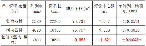 經(jīng)過總平圖設(shè)計(jì)對(duì)比,光伏組件豎向安裝和橫向安裝占地面積對(duì)比如下: