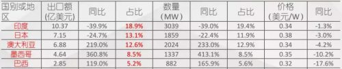 電池、組件對印出口規模分化,中國光伏企業出口分散化程度增加