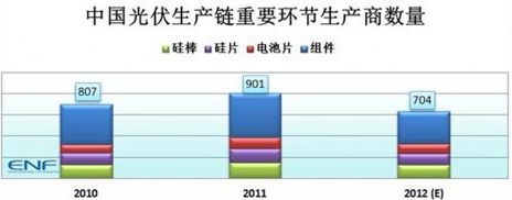 根易恩孚商務咨詢公司發布的2012年中國光伏市場的跟蹤數據來看,由于2012年光伏行業產能過剩,售價下滑,中國從設備制造、硅料生產到電池組件加工的全光伏產業鏈上,破產和停產的企業超過350家。國內光伏企業全線虧損,11家在美上市公司負債總額近1500億元,半數以上企業停產或半停產。