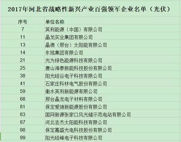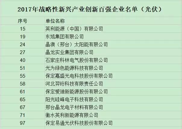 8 17家光伏企業入圍河北戰略新興產業“雙百強”名單