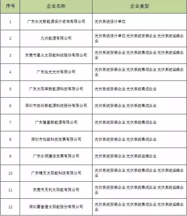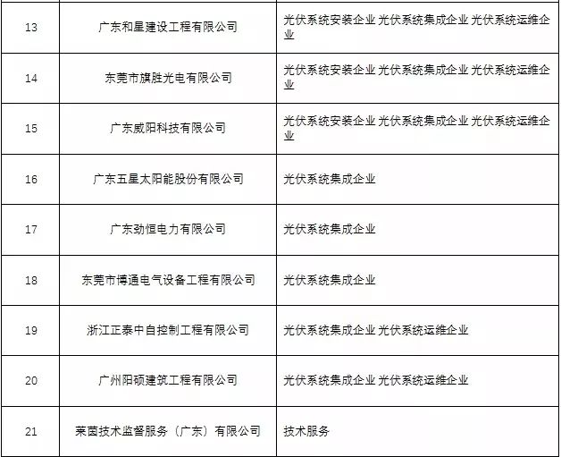第一批“廣東省分布式光伏發電項目建設規范企業(單位)”名單