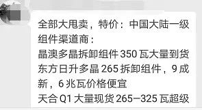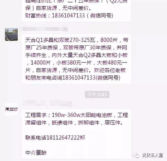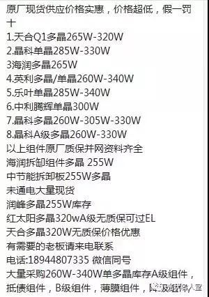 ? ? ? ?531新政后,小編天真的認(rèn)為,政策寒流下,唯有對光伏事業(yè)有情懷、有責(zé)任的企業(yè)和個人才能堅定不移的繼續(xù)從事光伏,同時還認(rèn)為以前專門從事降級組件或者拆卸組件貿(mào)易的企業(yè)隨之將退出光伏貿(mào)易商的舞臺。小編認(rèn)為主要原因是A級正品組件價格與降級組件差距減小,采購方更傾向于采正品A類組件,使用發(fā)電量更好的高效產(chǎn)品。但是,現(xiàn)實(shí)情況反應(yīng),不僅小編錯了,而且錯的那么嚴(yán)重嚴(yán)重。在以前熱鬧的微信群里,現(xiàn)在基本上都是降級組件采購銷售的信息,偶爾有點(diǎn)交流信息。
