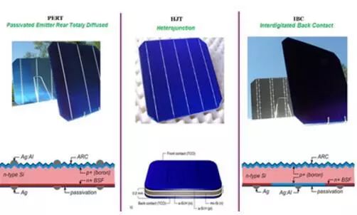 目前市場上的雙面光伏組件主要有單晶n型雙面光伏組件、單晶PERC雙面光伏組件、異質結(HIT或HJT)雙面光伏組件3類。