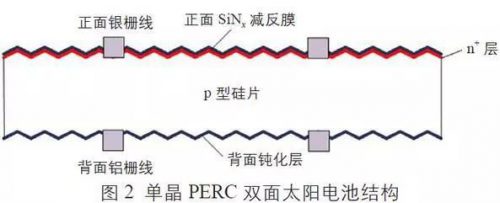 由于n+磷背場代替常規p型硅太陽電池用鋁漿印刷技術形成的鋁背場,背面電極也采用與正面電極相同的柵線結構,使電池前后表面都能吸收光線,實現雙面發電。