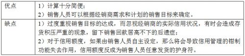 所謂設(shè)定信用額度,即由廠家針對不同交易經(jīng)銷商設(shè)定不同的最大賒銷金額,凡是不超過該金額的交易,均可以用信用方式進(jìn)行。