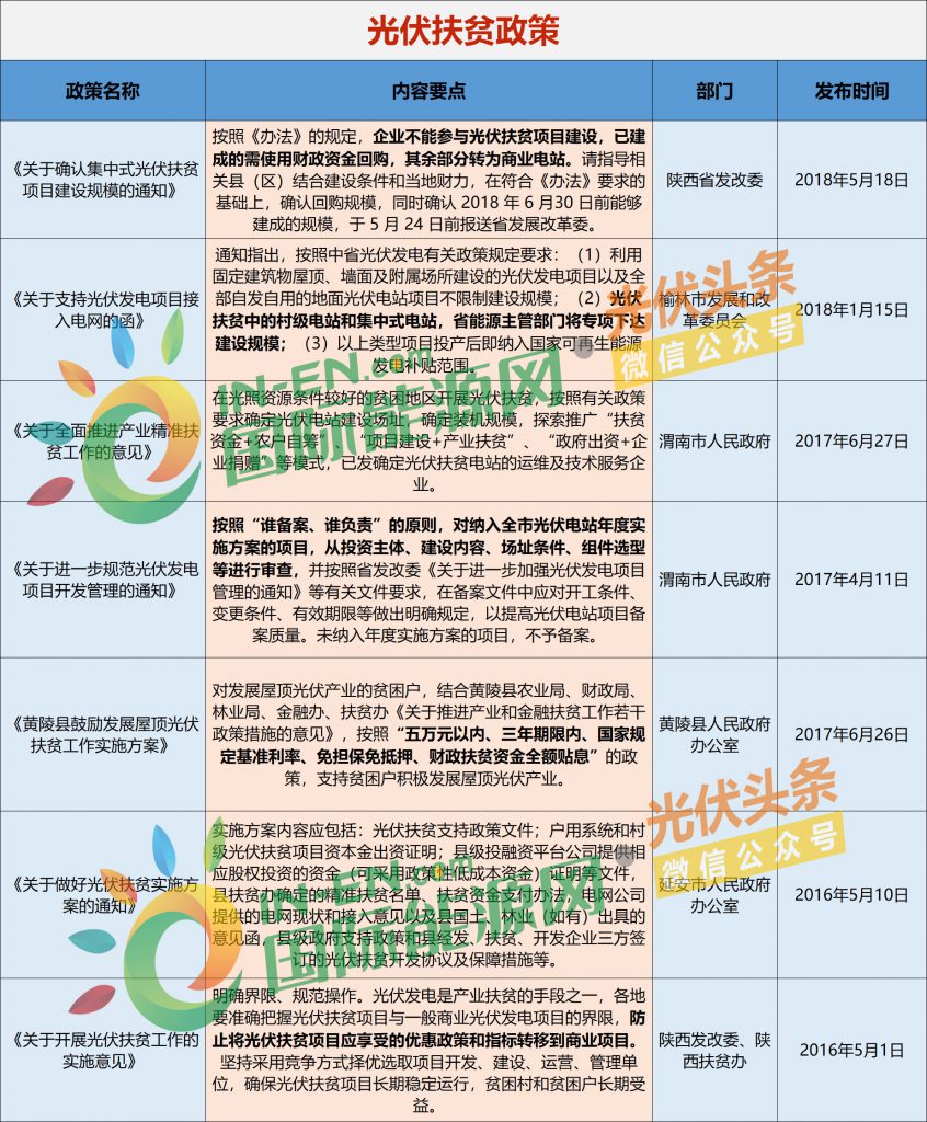自2015年9月,陜西省財政廳、省扶貧辦聯合下發通知,陜西省將安排2000萬元財政扶貧資金,在藍田、太白、長武、宜君、蒲城、延長、佳縣、勉縣、漢陰、洛南縣10個縣開展光伏扶貧試點,以促進貧困地區生活方式轉變,推動貧困人口增收。