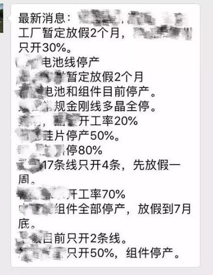 以至于“531”之后不久,就曝出有不少組件企業(yè)停工檢修或者部分停產(chǎn),以減少企業(yè)的運營成本和庫存壓力。