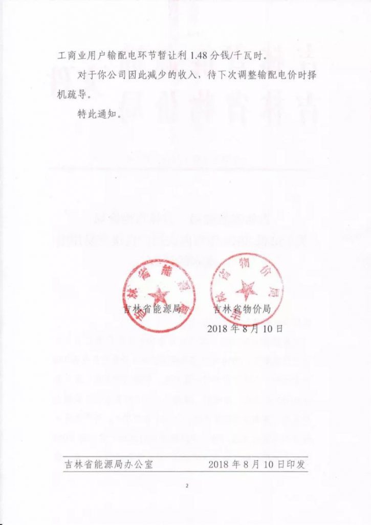 吉林省能源局、吉林省物價局聯合發布了《吉林省能源局吉林省物價局關于降低2018年省內大用戶直接交易用電成本的通知》。