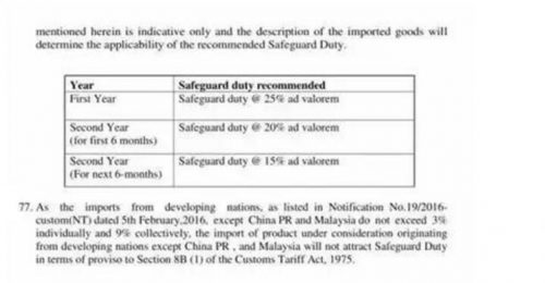 2018年7月30日,印度財政部稅務局正式宣布自7/30開始即日起對中國、馬來西亞及其他已開發國家的太陽能電池(無論是否封裝為組件)征收25%的保障性關稅。