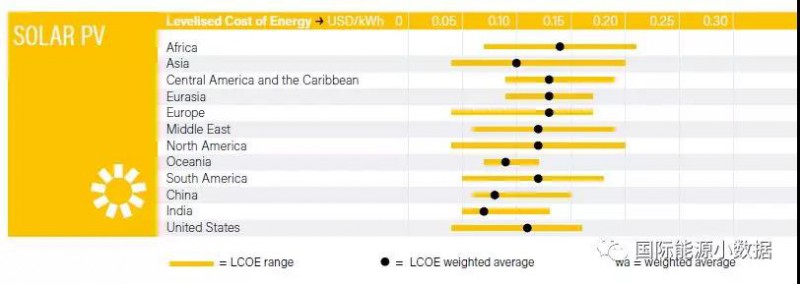 由上表可見,光伏電站全生命周期的平準成本在印度最低,其次是中國、大洋洲;非洲平準成本最高,其次是歐洲、中美洲、歐亞地區。