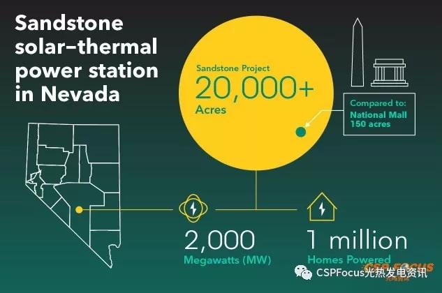 據(jù)外媒最新消息,美國(guó)著名太陽能熱發(fā)電項(xiàng)目開發(fā)商Solar Reserve LLC正在籌備共計(jì)2GW的Sandstone太陽能發(fā)電項(xiàng)目(Sandstone Solar Energy Project),項(xiàng)選址距離美國(guó)內(nèi)華達(dá)州拉斯維加斯西北部225英里,總占地面積約為20000英畝。