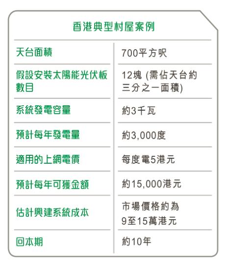 在此特別說明,區別于國內市場,香港的光伏電站只能采取全額上網的并網模式,因此5港元/度的補貼就是全部的度電收益,不再有省電收益一項,這是度電補貼可以高達5港元的原因之一吧。