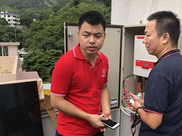 此外,香港的光伏項目想要并網是非常不容易的,首先要求具備相關資質的人員才能操作,而不是具備相關知識,因此,三晶電氣技術人員親自到電站現場,為客戶的電站的并網提供了技術指導支持(現場施工的必須要有當地的資質),下面便是昨天三晶技術人員協助并網測試的現場,電站需調試檢測達到驗收標準才能通過驗收。