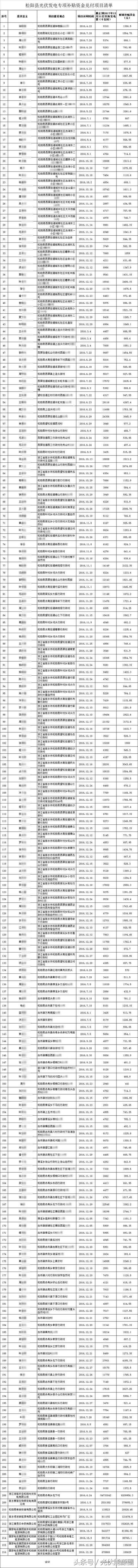 近日,浙江松陽縣,將松陽縣光伏發(fā)電專項補貼資金兌付項目清單予以公示,公示期為2018年9月13日-2018年9月19日。 統(tǒng)計的是截止到2017年12月31日實際發(fā)電量,補貼總額近954萬。 具體名單如下: