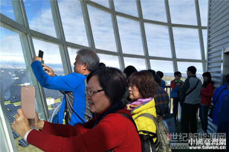 9月18日,臺灣少數民族代表走進位于青海省海南州共和縣塔拉灘的黃河水電光伏產業園。交流團先后參觀了黃河水電公司各大型水電站簡介展板、產業園區布局沙盤、光伏電站觀景塔等地,深入了解水光互補發電原理、光伏產業帶動生態建設、光伏工程設計建設、光伏制造產業鏈。站在觀景塔遠眺,一行行排列整齊的太陽能發電板矩陣在陽光的照射下,顯得格外壯觀。團員們不禁發出了“藍色的不僅只有藍天和海洋,還有著一望無際、熠熠閃光的光伏電板”的感嘆。