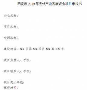 附件:1.西安市2019年光伏產業發展資金項目申報書