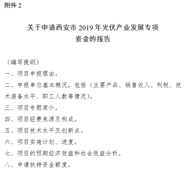 2.申報企業以正式文件上報“關于申請西安市2019年光伏產業發展資金的報告”(主要內容見附件2)。