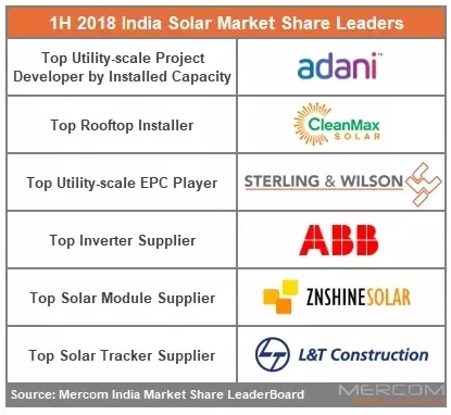 昨日,印度調(diào)研機構(gòu)Mercom India發(fā)布最新的2018年印度太陽能市場排行榜,榜單揭示了印度光伏行業(yè)領(lǐng)導(dǎo)者以及他們在印度太陽能供應(yīng)鏈中的市場份額和出貨量排名。