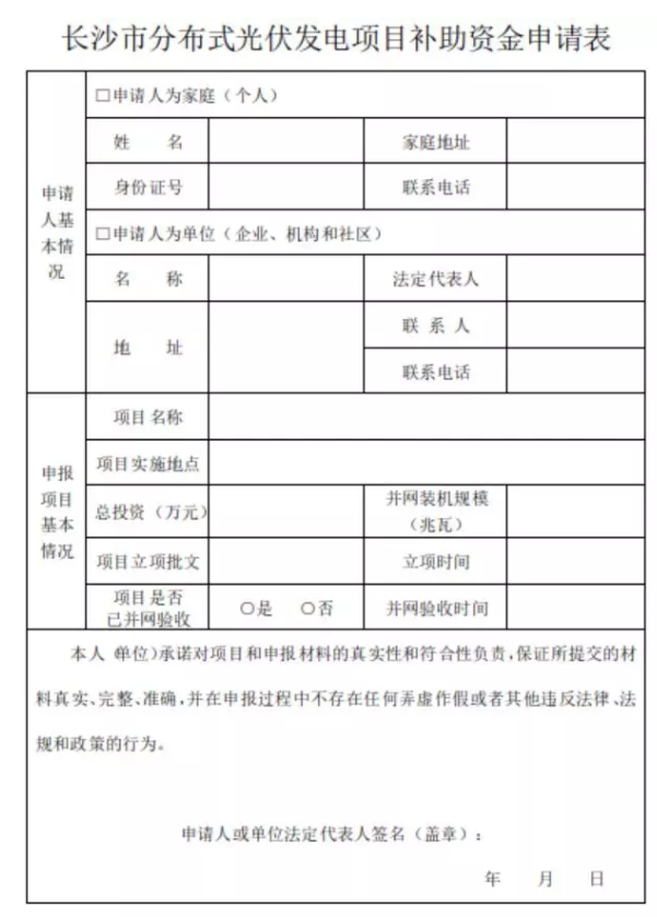 1、長(zhǎng)沙市分布式光伏發(fā)電項(xiàng)目補(bǔ)助資金申請(qǐng)表