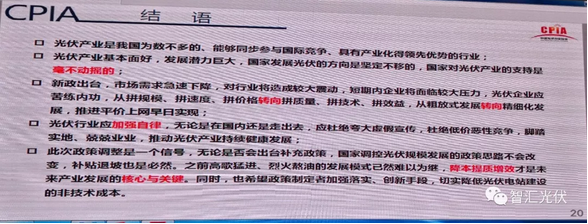 新政出臺,市場需求急速下降,對行業將造成較大震動。短期內企業將面臨較大壓力,光伏企業應苦練內功,從拼規模、拼速度、拼價格轉向拼質量、拼技術、拼效益,從粗放式發展轉向精細化發展,推進平價上網早日實現;