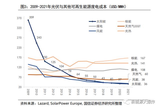風電是類似的道理,只不過相對來說風電的成本的下降潛力比光伏小一點,這也是為什么市場對光伏行業更加追捧的原因,但隨著海上風電發電成本的下降,風電的機會同樣不??!