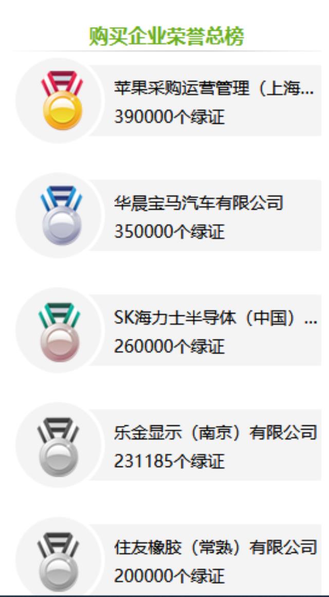 由于權威性不足,且未能與碳市場互認,中國綠證的國際認可度一直較低。盡管如此,在中國綠證認購平臺上,綠證購買總量前五的,均為外資或合資公司。其中蘋果采購運營管理(上海)有限公司采購390000個綠證,成為國內目前綠證最大消費者。