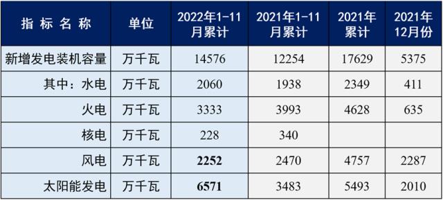 2022年1-11月份全國電力工業統計數據;來源:國家能源局;趕碳號制表
